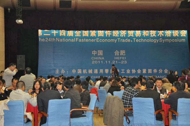 2011年11月21-23日,由中國機械通用零部件工業(yè)協(xié)會緊固件分會主辦的第二十四屆全國緊固件經濟貿易和技術洽談會在安徽合肥隆重舉辦!稻香樓賓館外高高掛起的大紅燈籠寓意祝福會議的順利舉辦?!扒⒄剷绷⒆阈袠I(yè),舉辦多年以來深得業(yè)內外人士的擁護和歡迎。本屆洽談會會聚了五湖四海的行業(yè)朋友超過500人。