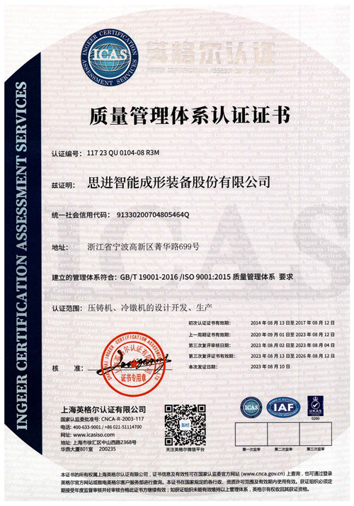 ISO9001:2015質(zhì)量管理體系證書