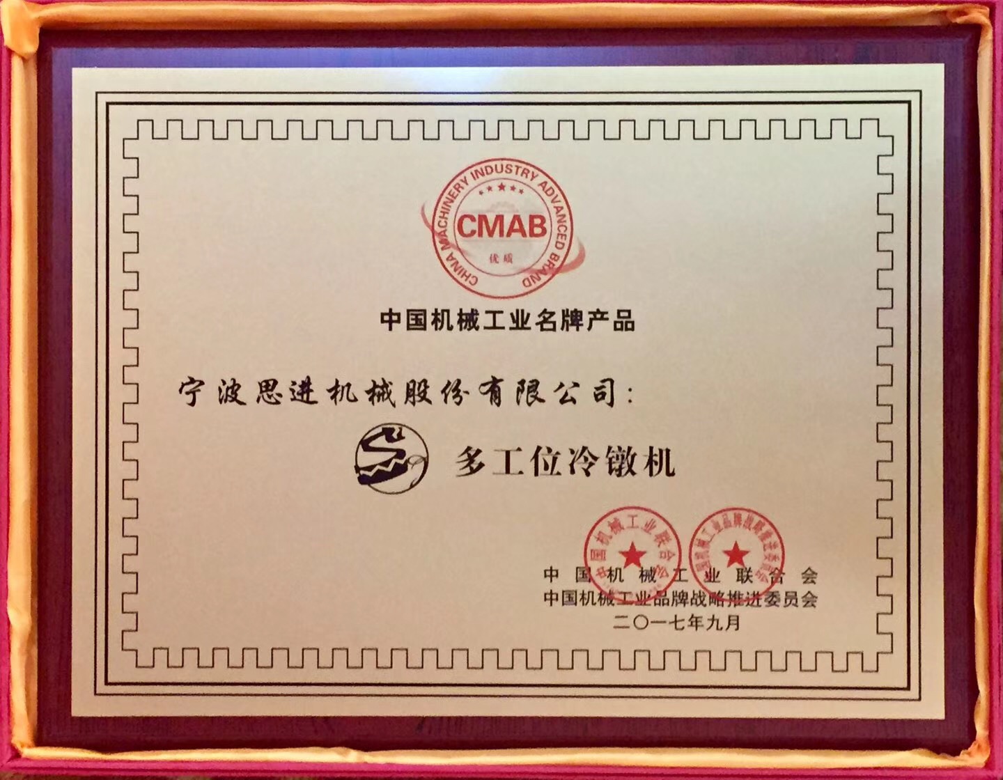 “中國(guó)機(jī)械工業(yè)名牌產(chǎn)品”的獲得需要企業(yè)在品牌競(jìng)爭(zhēng)力、內(nèi)部管理能力、創(chuàng)新能力、誠(chéng)信體系、社會(huì)責(zé)任、企業(yè)文化等方面具有突出業(yè)績(jī),申報(bào)的產(chǎn)品要掌握核心技術(shù),采用先進(jìn)標(biāo)準(zhǔn)、擁有自主知識(shí)產(chǎn)權(quán)。獲此殊榮,對(duì)今后寧波思進(jìn)多工位冷鐓機(jī)的市場(chǎng)競(jìng)爭(zhēng)力、品牌推廣及產(chǎn)品質(zhì)量提升等將起到積極的推動(dòng)作用。